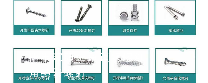 1.機螺釘 2.自攻螺釘 3.鉆尾螺釘 4.墻板釘 5.纖維板釘 6.木螺釘7.六角木螺釘 8.不脫出螺釘 9.組合螺釘 10.微型螺釘 11.家具螺釘 12.電子螺釘頭型:1.六角頭(hexagon head) 2.六角頭法蘭面(hexagon head with flange) 3.