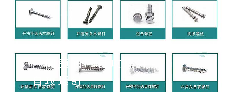 主要分類包括普通螺絲、機螺絲、自攻螺絲和膨脹螺絲三種。有頭螺釘Cap screw 過去限于全牙的扣件。六角頭螺釘Hex cap screw與大六角螺栓Hex bolt 顧名思義為頭部為六角型的外螺紋扣件,設計為使用扳手轉動。依照ASME B18.2.