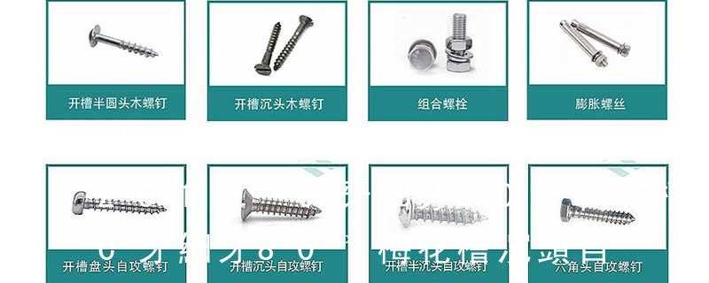 1、Flat:平頭 (鎖入后,頂部與工作件齊平)2、Oval:色拉頭、O頭、半沉頭 3、Round:圓頭 4、Pan:圓扁頭 5、Truss:大圓扁頭 6、Hex:六角頭 A-5:Finish Code/外觀處理。公制自攻螺絲 :于品名后方直接標示 Tapp (鐵板牙自攻螺絲) B-2: Plastic Tapping Screw. (塑膠用,自攻螺絲) C: Wooden Screw : 木工螺絲 D: Drywall Screw :水泥墻螺絲 E: Self Drilling Screws鉆尾螺絲(不銹鋼鉆尾螺絲,復合材料鉆尾螺絲) F:膨脹螺絲,四片膨脹螺絲又