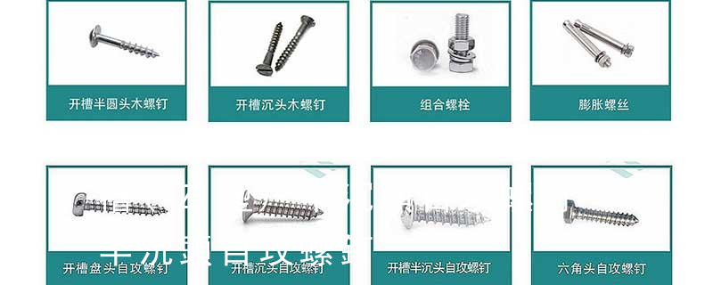 1)十字槽盤頭自鉆自攻螺釘 2)十字槽沉頭自鉆自攻螺釘 3)十字槽半沉頭自鉆自攻螺釘,跟上面沉頭螺絲接近。4)六角法蘭面自鉆自攻螺釘 5)六角凸緣自鉆 自攻螺釘根據材質可分為:鋼材1022A,不銹鐵410,不銹鋼304