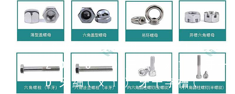 B:球面圓柱頭; C:圓柱頭; F(K):沉頭; H:六角頭;HW:六角頭帶墊圈; O:半沉頭; P:平元頭; R:半元頭;PW:平元頭帶墊圈; T:大扁頭; V:蘑菇頭;④ 螺釘牙型 A:自攻尖尾(日標(biāo)第1種)疏 主要分類(lèi)包括普通螺絲、機(jī)螺絲、自攻螺絲和膨脹螺絲三種。 有頭螺釘Cap screw 過(guò)去限于全牙的扣件。 六角頭螺釘Hex cap screw與大六角螺栓Hex bolt 顧名思義為頭部為六角型的外螺紋扣件,設(shè)計(jì)為使用扳手轉(zhuǎn)動(dòng)。依照ASME B18.2.1標(biāo)準(zhǔn),六