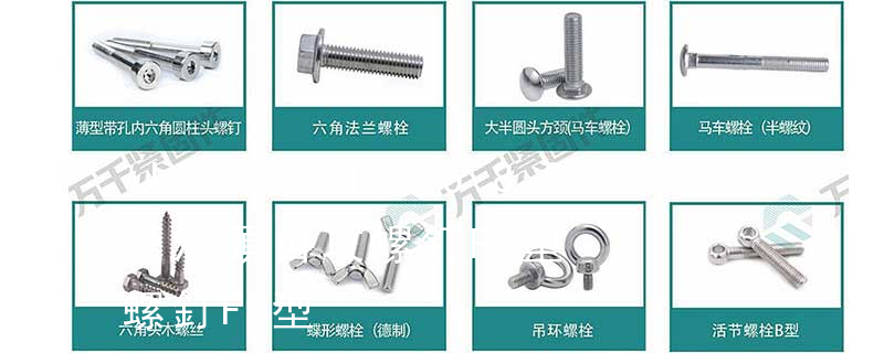 最常見的是六角頭螺栓 國標GB5783 GB5782 德標Din933 Din931 (8.8級粗牙外六角螺栓)圓柱頭內(nèi)六角螺釘 國標GB70.1 德標Din912 還有很多像什么盤頭十字螺釘 沉頭十字螺釘 開槽盤頭螺釘 開槽沉頭螺釘?shù)鹊群芏喾N。螺母的種