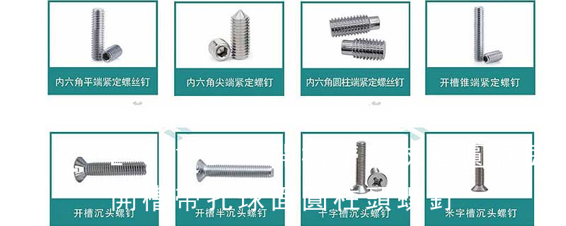 開槽帶孔球面 圓柱頭蚴釘 Slotted capstan screws 開槽長圓柱端 緊定螺釘 Slotted set srews with full dog point 開槽平端 緊定螺釘(半牙) Slotted set srews with chamfered end 小六角特薄細牙 螺母 Pip nuts