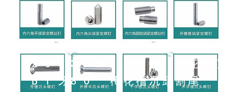 (鐵板牙自攻螺絲) B-2: Plastic Tapping Screw. (塑膠用,自攻螺絲) C: Wooden Screw : 木工螺絲 D: Drywall Screw :水泥墻螺絲 E: Self Drilling Screws鉆尾螺絲(不銹鋼鉆尾螺絲,復合材料鉆尾螺絲) F:膨脹螺絲,四片膨脹螺絲又