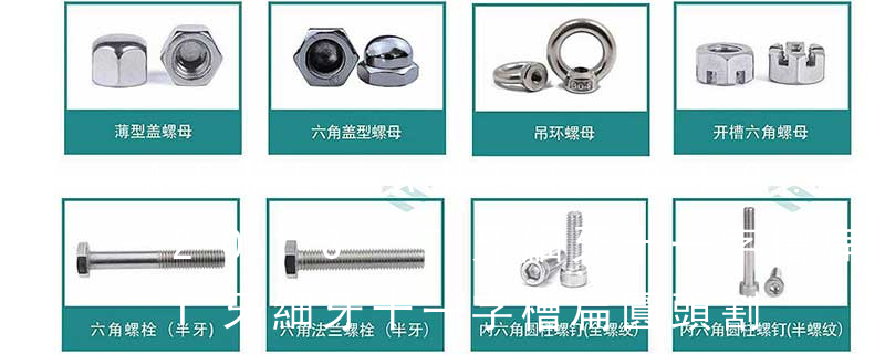 依照ASME B18.2.1標準,六角頭螺釘(Hex cap screw)較一般的大六角螺栓(Hex bolt)的頭高和桿長公差小,因此ASME B18.2.1六角螺釘適合安裝在所有六角螺栓可以使用的地方,也包含大六角螺栓太大而不能使用的地方。 內六角頭螺釘Socket cap Hexagon head bolts with fine pitch thread full thread六角頭螺栓 細牙 全螺紋 Hexagon flange bolts –heavy series-product grade B 六角法蘭面螺栓 加大系列車員 B級 Cross recessed pan head tapping screws 十字槽盤頭自攻螺釘 Hex